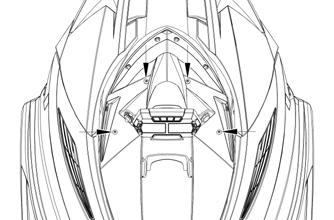 REMOVING 1.Elevate the front of the snowmobile and secure using a suitable support stand. 2.Remove the Torx-head screws securing the front skid plate to the chassis; then remove the front skid plate. 3.Remove the eight push rivets securing the steering boot to the chassis; then slide the boot away from the chassis.