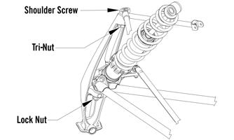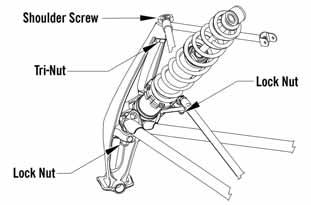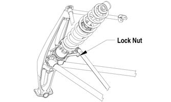 Tighten the lower A-arm lock nut to 45 ft-lb. NOTE: The weight of the snowmobile will allow the