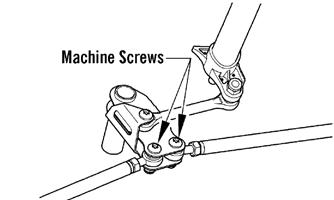 5.Remove the cap screws and handlebar caps securing the handlebar to the top of the handlebar riser; then remove the two Torx-head screws and nuts securing the top of steering post to the chassis. Account for both steering post blocks and retaining plate.