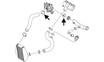 4.Install the intercooler hose to the turbo; then install the intake duct to the turbo using the existing clamps.