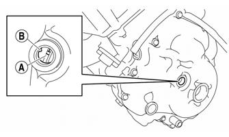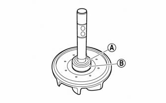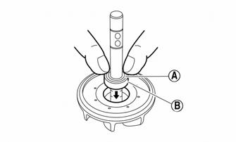 3.Apply tab water or coolant to the impeller shaft; then press the rubber damper holder (A) and rubber damper (B) onto the impeller shaft.