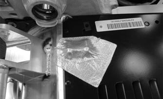 1.Remove the foil covering the right-side coolant hose and clamps.