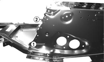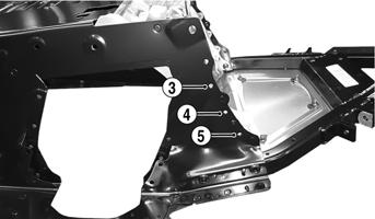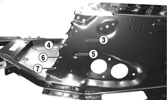 1.Position the heat exchanger mounting holes with the holes in the tunnel; then secure the PTO-side of the exchanger using two rivets in the order shown below.