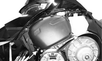 REMOVING/INSTALLING The air filter inside the air filter housing must be clean to provide good engine power and gas mileage. If operating the snowmobile in deep powder conditions, the air filter should be inspected for snow buildup. 1.Remove the left-side access panel; then remove the clips securing the air filter housing cover.