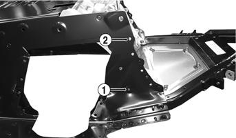 Tighten the screw to 7.2 ft-lb. 8.Install the rear access plate. Tighten the screws to 9 ft-lb. 9.Remove the four Torx-head screws securing the right-side footrest to the tunnel and the support; then with a drain pan in position, remove the drain plug from the oil tank.