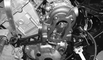 1.With the turbo installed onto the MAG-side mounting bracket using the existing cap screws. Tighten to 50 ft-lb. Secure the assembly to the chassis using the existing screws and nuts. Tighten to 12 ft-lb.