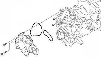 5.Install the impeller assembly into the housing and secure using the existing circlip. 6.With the engine still at Top-Dead-Center (TDC), install the water pump and secure using the existing screws. Tighten to 8.7 ft-lb. 7.Fill the cooling system.
