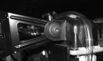 2.Drain the oil from the engine/transmission. 3.Remove the left side engine covers and left side footwell. 4.Loosen the hose clamps and slide the clamps away from the hose ends approximately 2 in.; then remove both hoses from the water pump. 5.Remove the two cap screws securing the water pump to the engine; then remove the water pump.