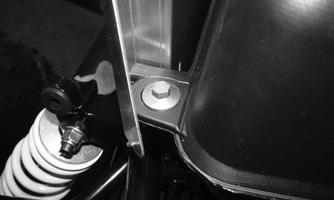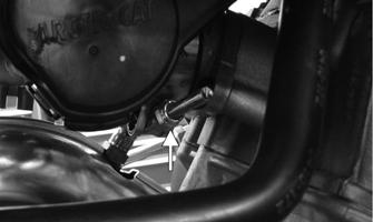 5.Remove the cap screw securing the left rear side of the gas tank to the frame.