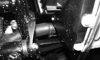 10.Loosen the clamp securing the throttle body to the boot; then remove the throttle body and rubber intake boots.