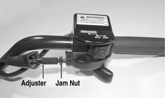 2.Turn the adjuster until the throttle cable has proper free-play of 3-6 mm (1/8-1/4 in.) at the lever. 3.Tighten the jam nut against the throttle cable adjuster securely; then slide the rubber boot over the adjuster.