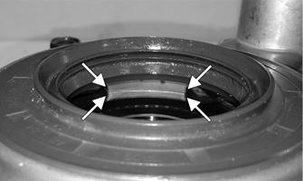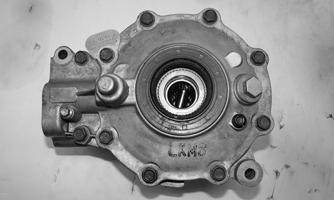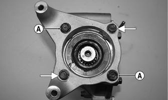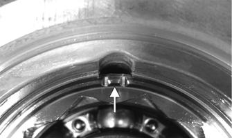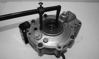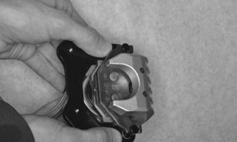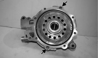 8.Thoroughly clean the matting surface of the case and cover. Apply a suitable sealant to the surface; then install the cover. Using a criss-cross pattern, tighten the cap screws to 16.5 ft-lb (22.4 N-m). 9.Place the two dowel pins into position; then install the brake caliper mount. Using two new patch-lock caps screws, tighten all four cap screws with crush washers to 19 ft-lb (25.8 N-m).