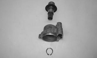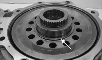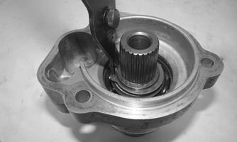 Assembling Input Shaft 1.Using an appropriate sized bearing driver, press a new bearing into the input shaft housing. Secure the bearing with the existing snap ring, making sure the sharp edge of the snap ring faces toward the outside.