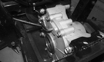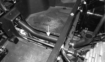 7.Secure the coolant pipe bracket back onto the frame using a cap screw. Install the differential drain plug.