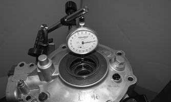 Over 0.25 mm (0.010 in.) Decrease shim thickness Gear Tooth Contact A.After backlash has been set, the gear tooth contact must be confirmed. B.Remove the ring gear housing. Thoroughly clean the gear teeth of the ring and pinion gears. Apply machinist’s dye to several teeth of the pinion gear.