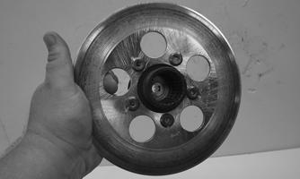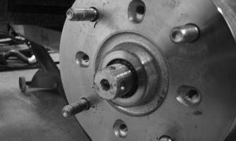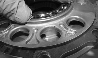 CLEANING AND INSPECTING 1.Clean all hub components. 2.Inspect all threads for stripping or damage. 3.Inspect the brake disc (if applicable) for cracks or warping. 4.Inspect the hub for pits, cracks, loose studs, or spline wear. REPLACING WHEEL STUDS 1.Secure the hub in a suitable holding fixture and remove the brake disc (if applicable). 2.Drive the damaged stud out of the hub; then place the new stud into the hub and thread on an appropriate flange nut.