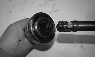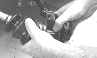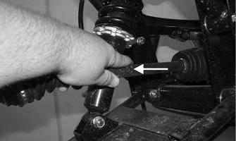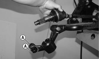 5.Remove the lower and upper ball joint cap screws taking care not to strip the threads on the ball joint shaft; then using a rubber mallet, tap the end of the axle and free it from the knuckle assembly.