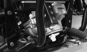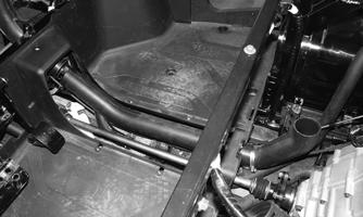 3.Lift the differential up into the frame mounts; then insert the through bolts. Using new lock nuts, tighten to 39 ft-lb (53 N-m). Place the bladder hose onto the ventilation fitting located on the top left of the gear case.