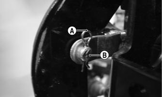 3.Remove the lock pin (A) from the brake rod pin (B).