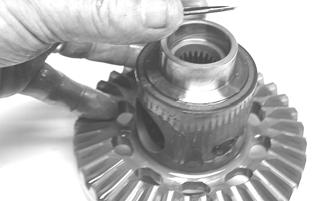 6.Place the differential with the open side down; then lift the housing off the spider assembly. Account for shim(s) and mark as left-side.