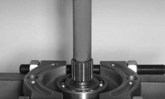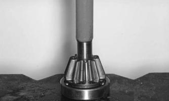 3.Place the pinion gear in a bearing puller or press blocks; then remove the pinion bearing using a press.