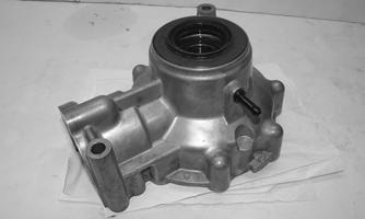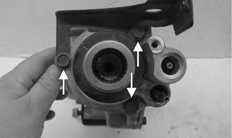 3.Noting the orientation of the actuator bracket, remove the three cap screws securing the input housing. Using a rubber a mallet to loosen the housing from the differential, remove the housing. Account for the dowel pin and gasket.