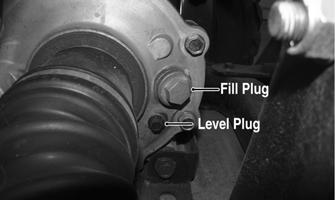 5.Remove the fill and check plugs; then add the recommended amount of gear lubricant. Secure the fill and check plugs.