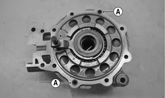 2.Using a criss-cross pattern, loosen and remove the cap screws securing the differential cover. 3.Using a plastic mallet, tap lightly to remove the differential cover. Account for a gasket and two dowel pins (A).