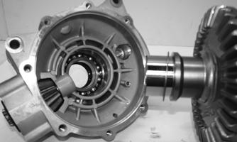 Temporarily install the ring gear housing with shims used when setting backlash. Install the cover. C.Rotate the pinion gear shaft back and forth, so the dye-coated gear teeth contact each other. D.The dye should show that the contact area of the two sets of teeth are centered. If contact is too high or too low on the teeth, the pinion gear shaft shim must be exchanged to achieve proper tooth contact while maintaining correct backlash. 7.Place the correctly sized case side shim onto the ring gear; then install into the gear case. Place the cover side shim onto the ring gear.