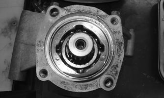 5.To gain access to the housing bearing, remove the seal and snap ring from the input shaft housing.