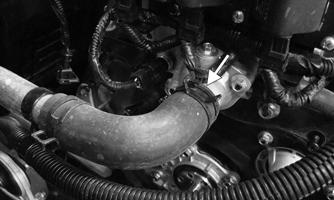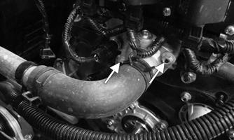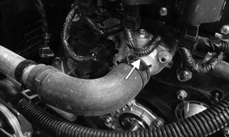 3.Install the coolant hose to the thermostat housing; then pour the recommended coolant into the coolant reservoir; then bleed the system (see Bleeding Cooling System in this section).