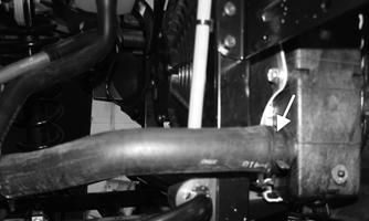 4.Remove the two cap screws and lock nuts securing the radiator bracket to the frame; then remove the radiator bracket from the vehicle; then disconnect the radiator fan electrical connection. Discard lock nuts.