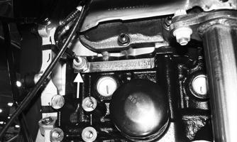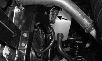 NOTE: If you cannot see any coolant in the reservoir, inspect the cooling system for leaks. If no leaks are present, add coolant using the bleed procedure below. Bleeding Cooling System While the cooling system is being filled, air pockets may develop; therefore, make sure the cooling system is properly bled, with no trapped air in the system. 1.Slowly loosen the plug from the top of the thermostat housing above the drive clutch, allowing trapped air to escape.