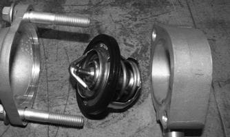 2.Install the two cap screws securing the thermostat housing and tighten to 15 ft-lb (20 N-m).