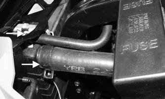 Inspect the fuel lines per the maintenance schedule. Damage from aging may not always be visible. Do not bend or obstruct the routing of the vent hose or fuel return hose.