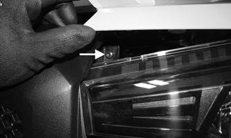 3.Gently lift up on each front fender where it meets the grille to be able to install the upper headlight cap screw; then install the upper headlight cap screw.