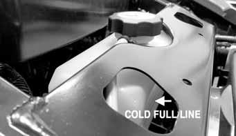 2.Inspect the coolant level cold. The level shouldn’t be lower than the cold full line. When it’s at operating temperature, the coolant level may be above the cold full line.