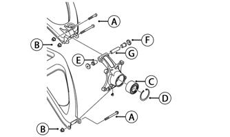 2.Remove the wheel; then remove the brake caliper; then remove the hub as described in the Hub/Brake