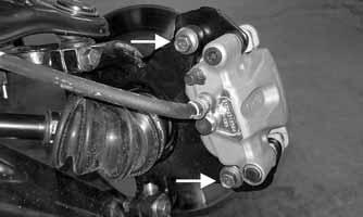 9.Secure the brake caliper holder to the knuckle with two new “patch-lock” cap screws. Tighten to 45 ft-lb (61.2 N-m).