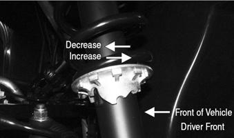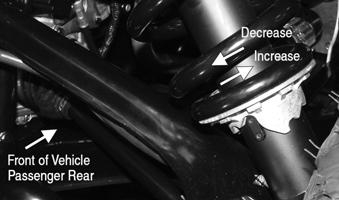 NOTE: Before attempting to adjust suspension, clean dirt and debris from the sleeve and remove load from the suspension; then use the spanner wrench to adjust the sleeve to the desired position. To adjust the spring force on these shock absorbers, rotate the preload adjustment sleeve with a suitable spanner wrench until desired spring tension is achieved.