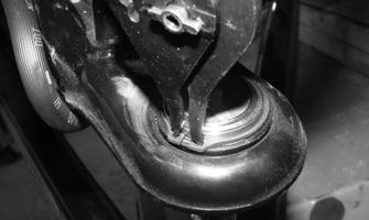 E.Shock absorber eyelet bushings worn, deteriorated, cracked, or missing.