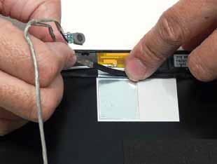 1. Place the Microphone Module in the LCD Module as shown. 2. Run the cable as shown and secure it using the adhesive tabs.