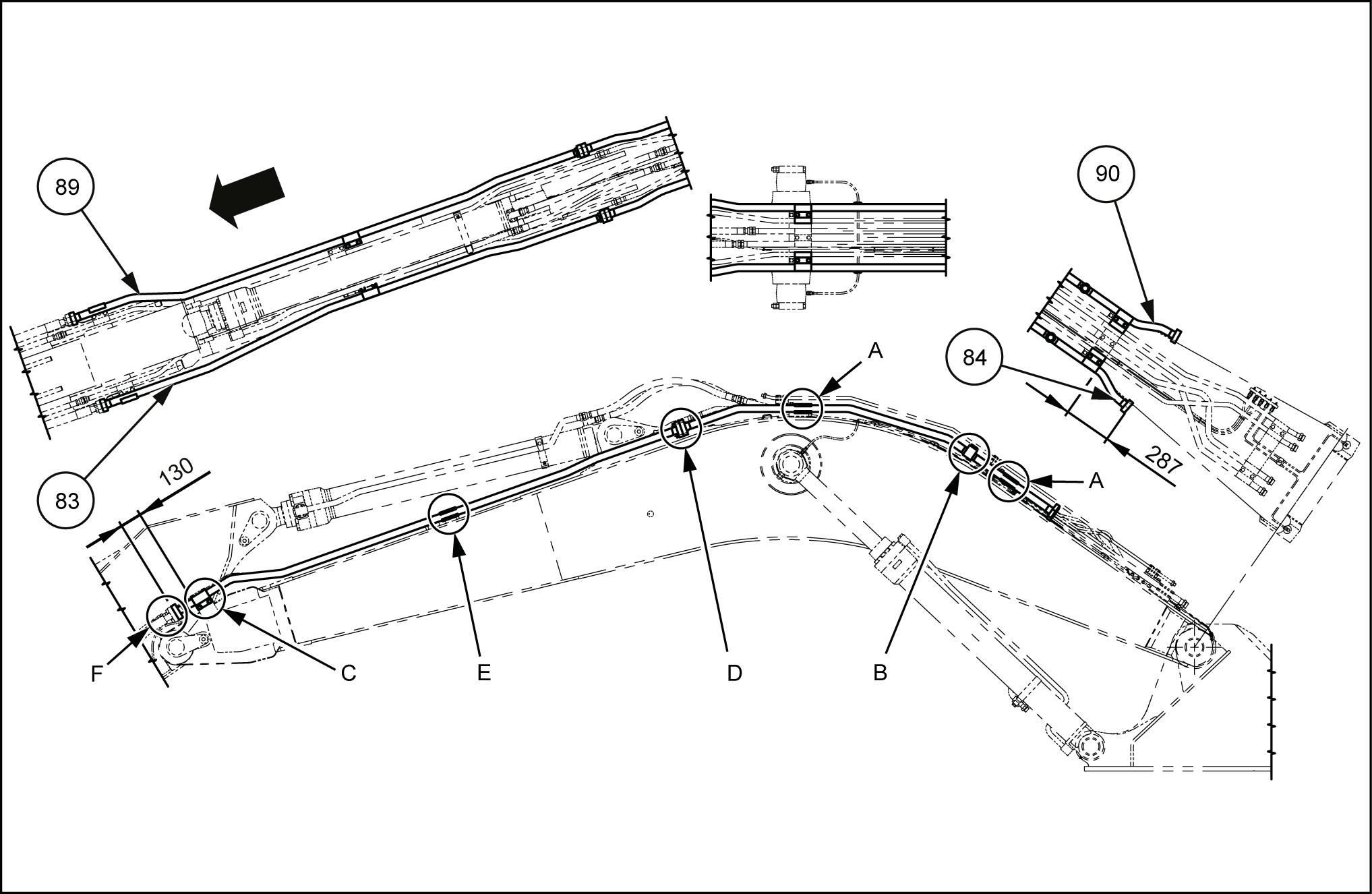Adaptador para manguera 2 KHJ1349 Manguera hidráulica 2 KBJ1 1790 Junta tórica 2 M20J0771 Brida partida ( x 1 / 4 ) 4 KTJ0029 Perno cabeza hueca hexagonal ( M14 x ) 8 108R014Y050R