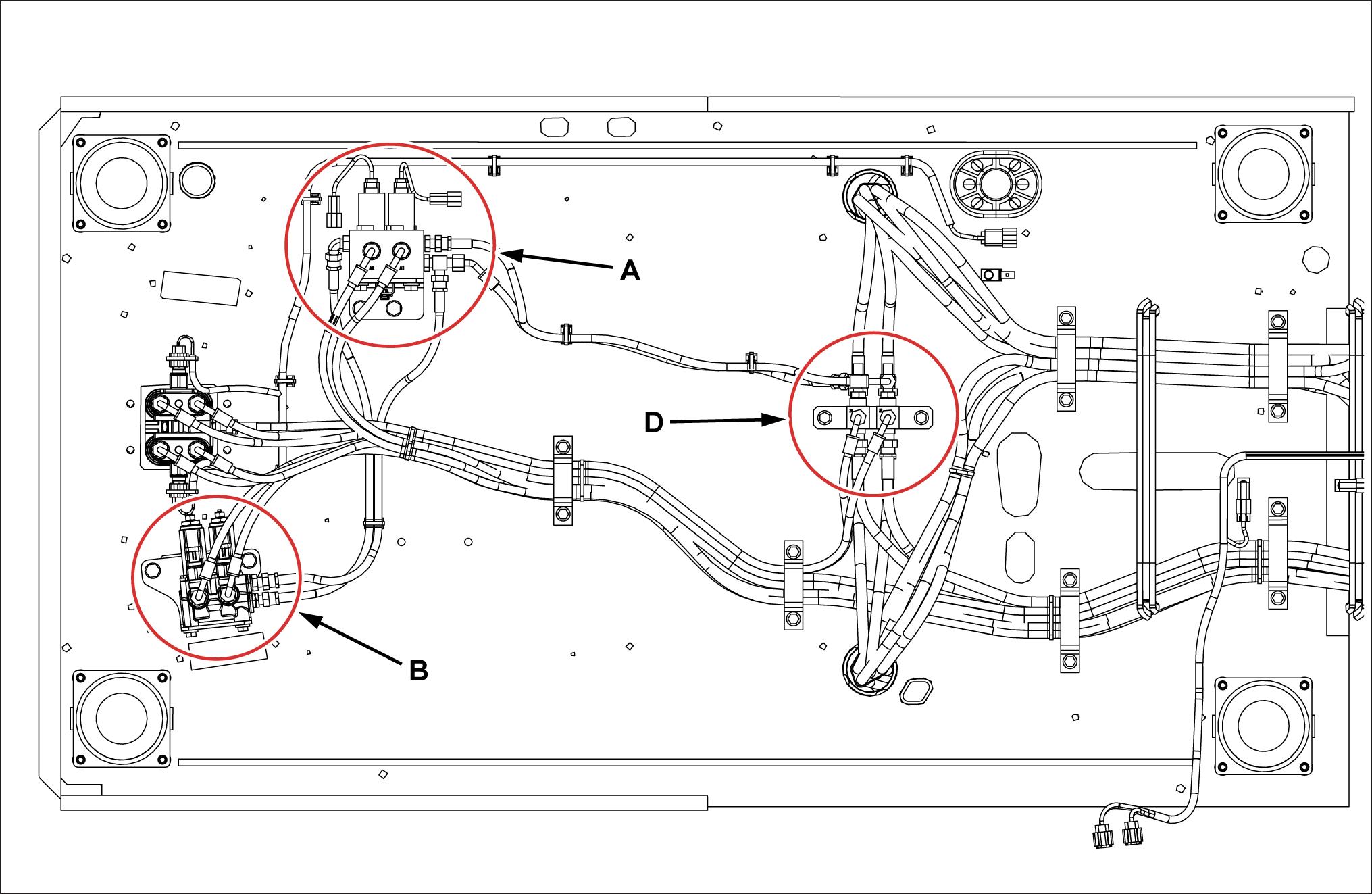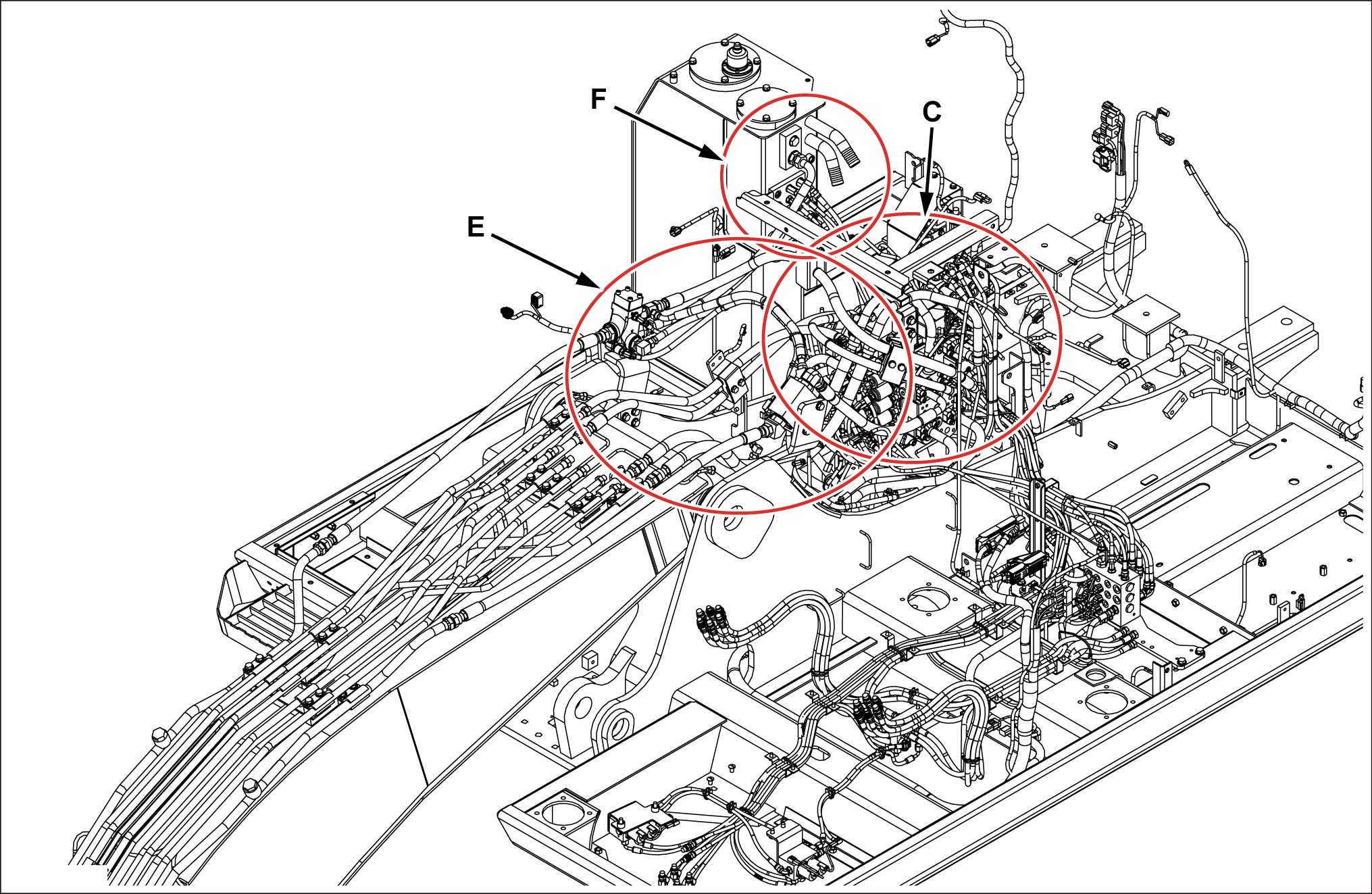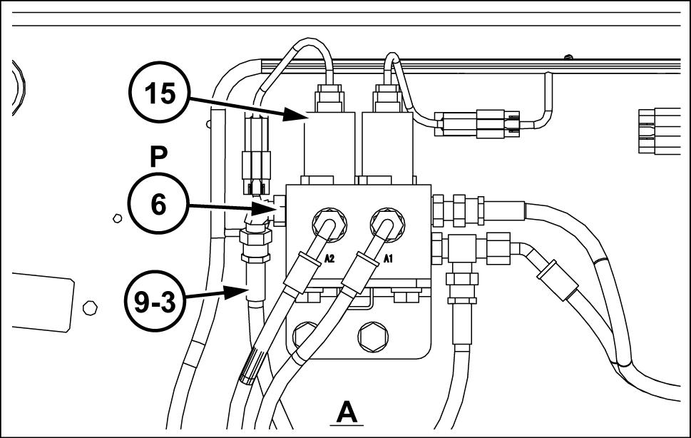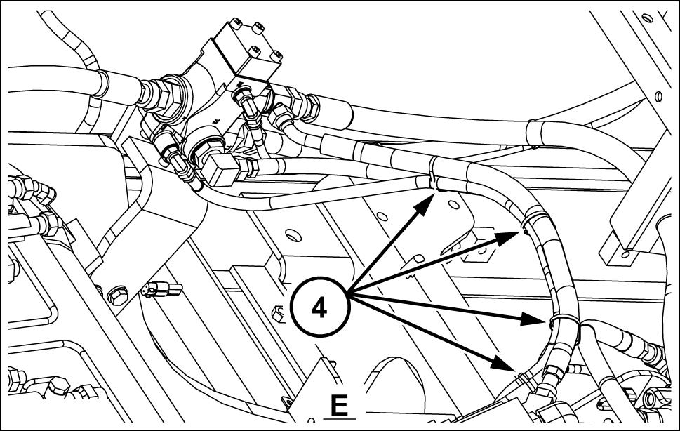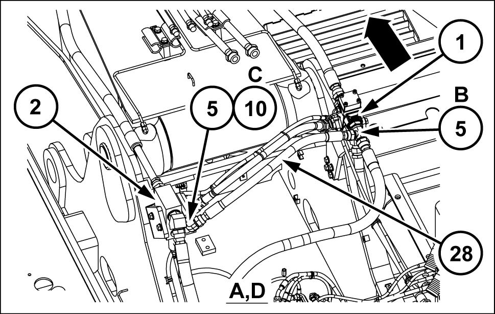 Instale conexión T (14) puerto B válvula tres direcciones (1) Coloque junta tórica (4) racor T (14) e instale manguera hidráulica (31)