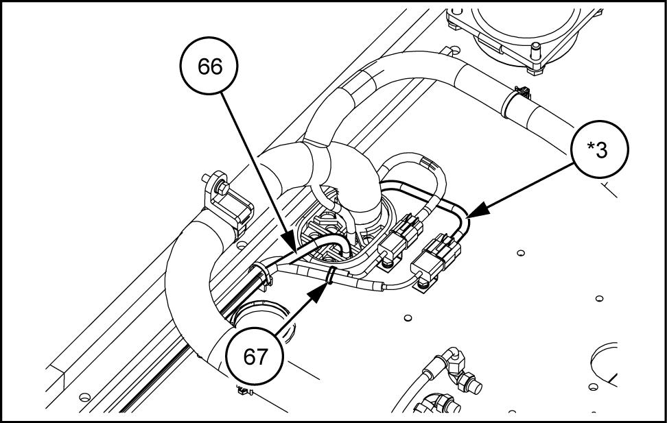Conecte conector patillas) del mazo cables (66) mazo cables principal del bastidor (*3) y fíjelo con brida (67)
