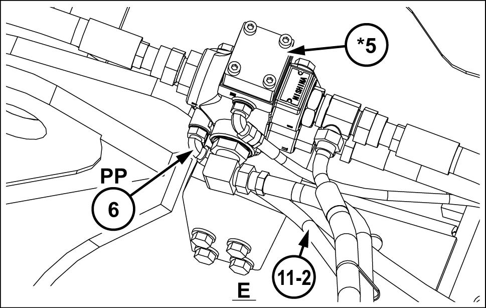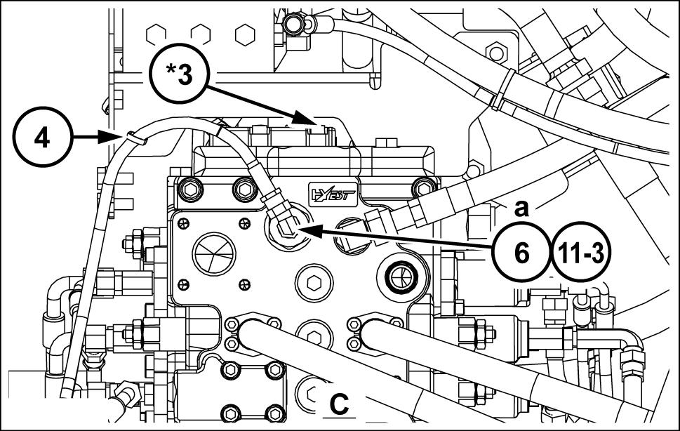 Monte junta tórica (3) toma válvula control (*3) y conecte manguera hidráulica (31) con dos bridas abiertas y cuatro pernos cabeza hueca hexagonal (35)
