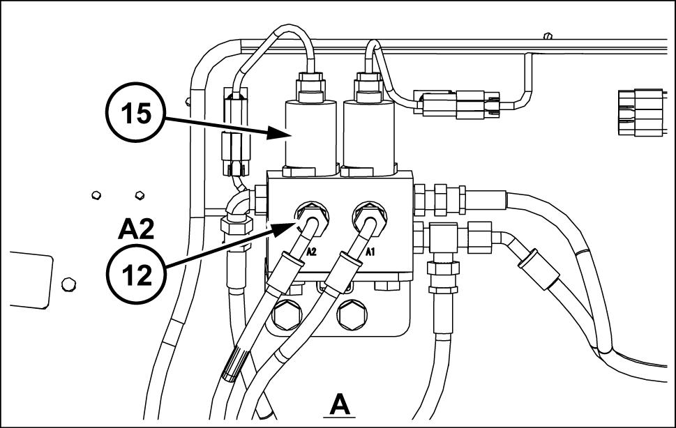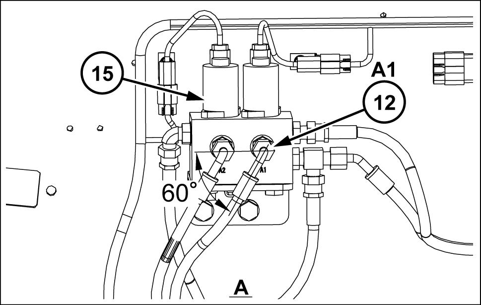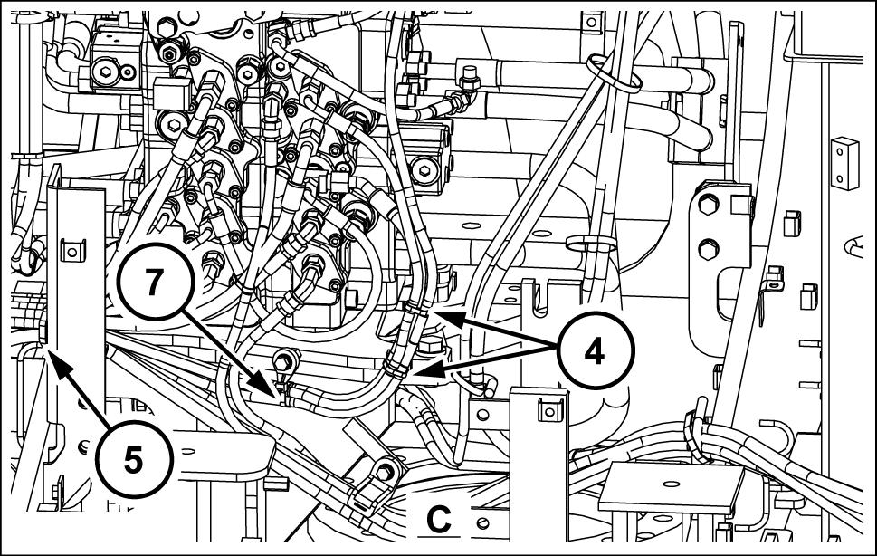 12. Instale codo (10) puerto C válvula descarga proporcional electromagnética (2)