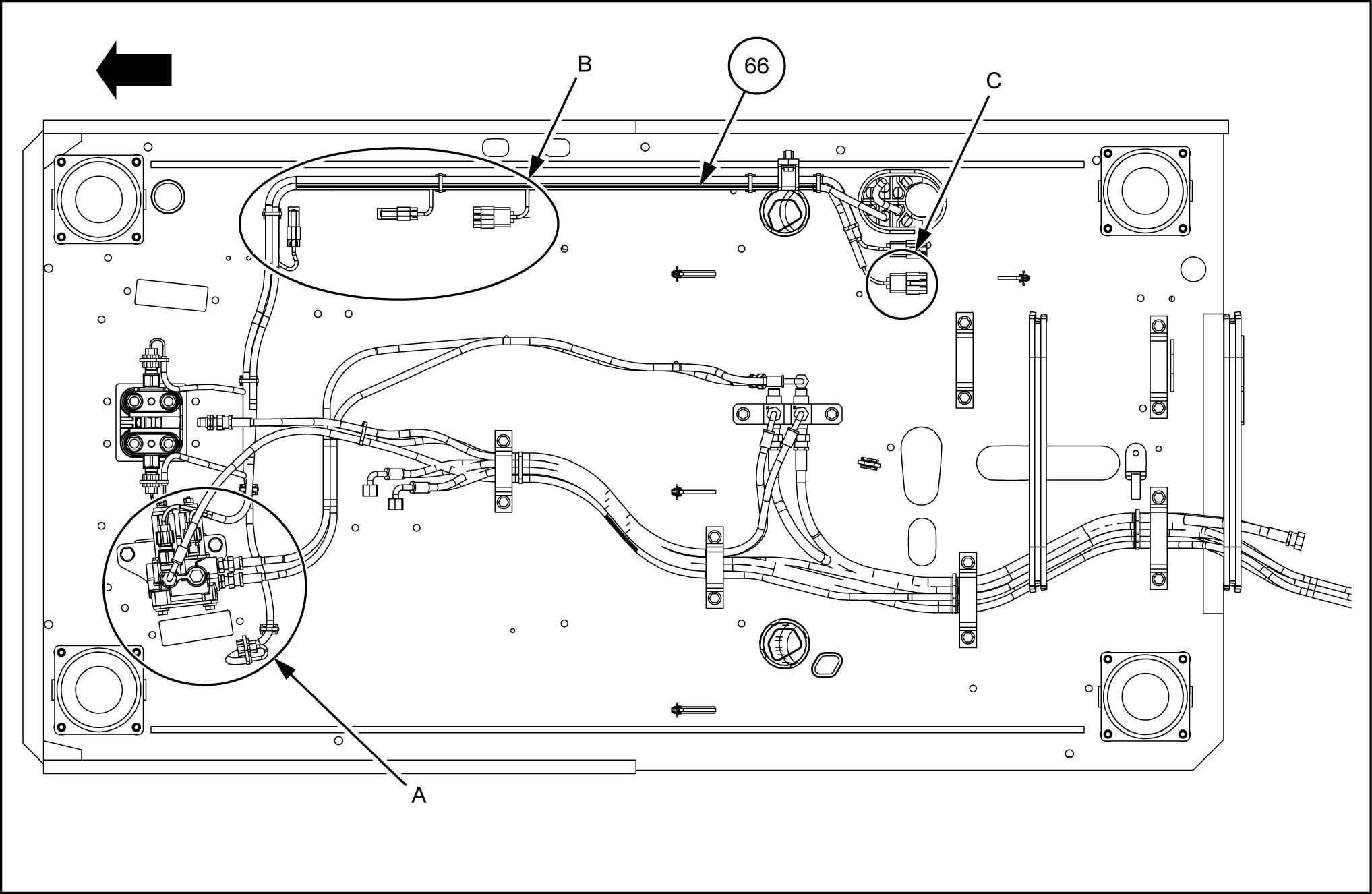 Extienda mazo cables (66) hacia lado del suelo debajo cabina.