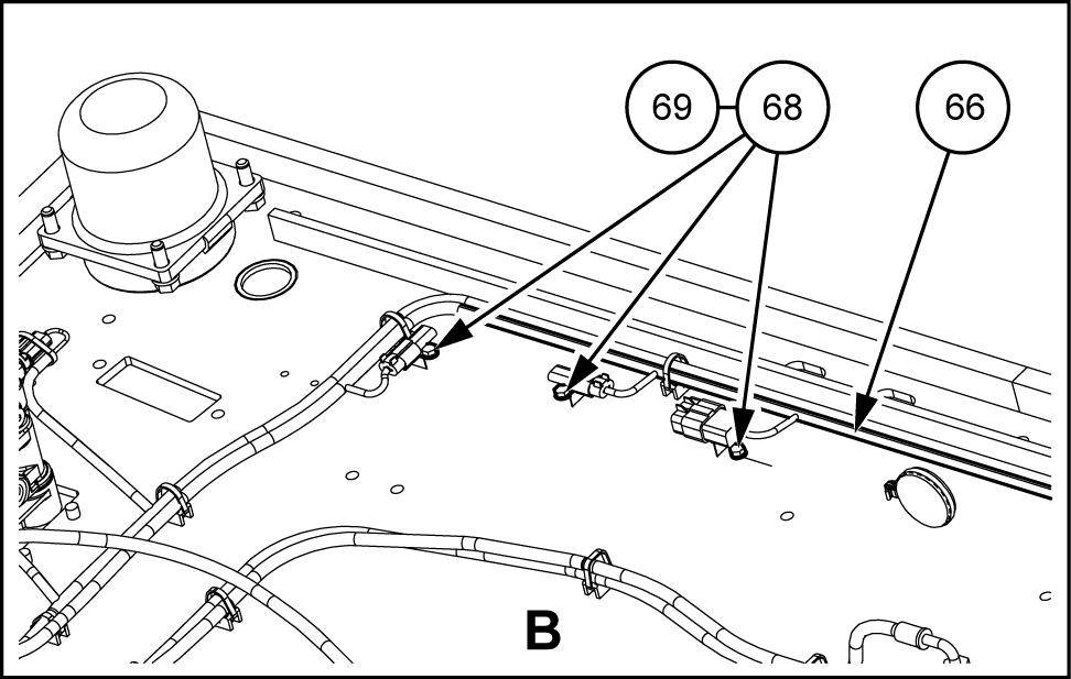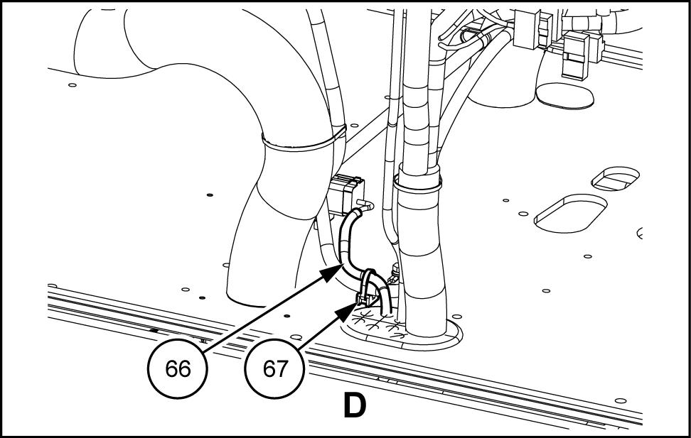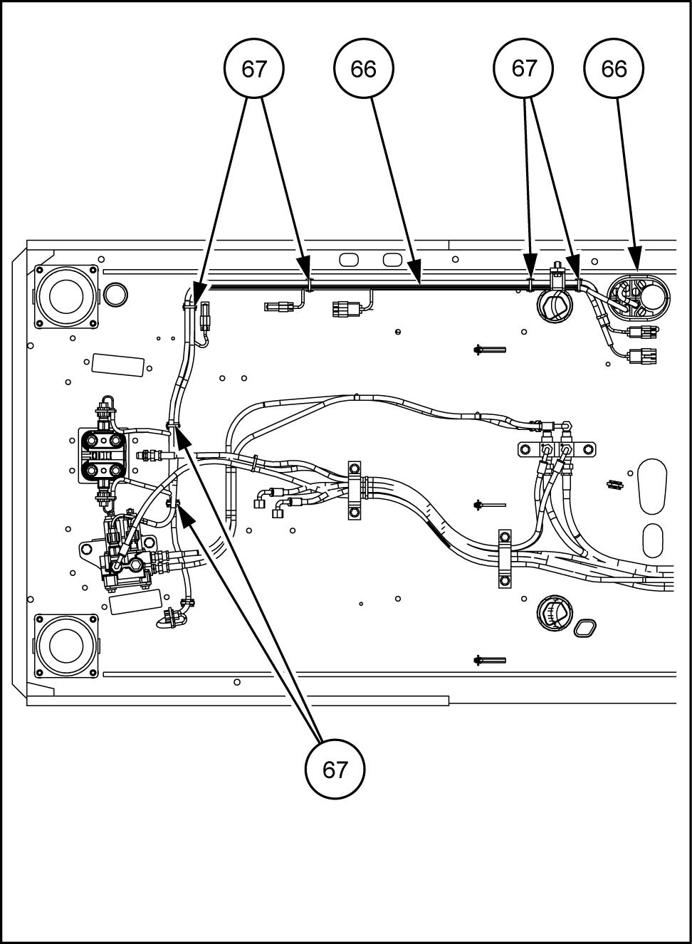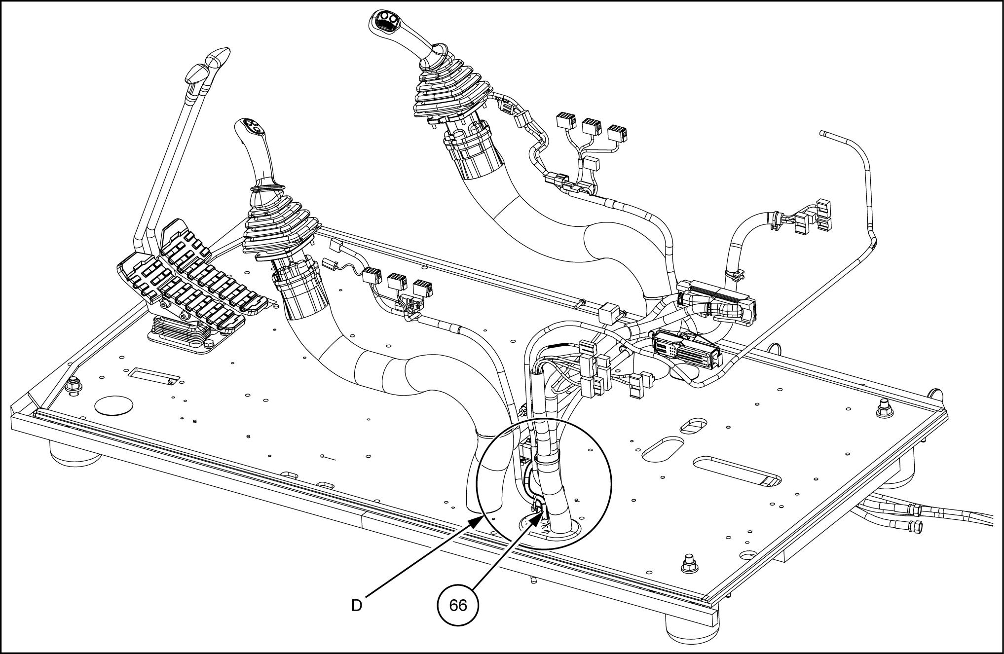 Conecte conector (16 patillas) del mazo cables (66) mazo cables principal cabina y fíjelo con brida (67)