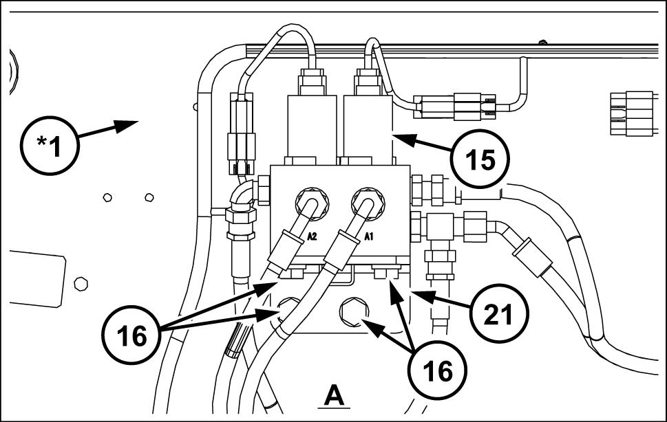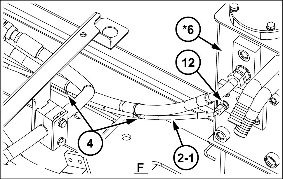 21. Instale adaptador para manguitos (12) sito hidráulico (*6)
